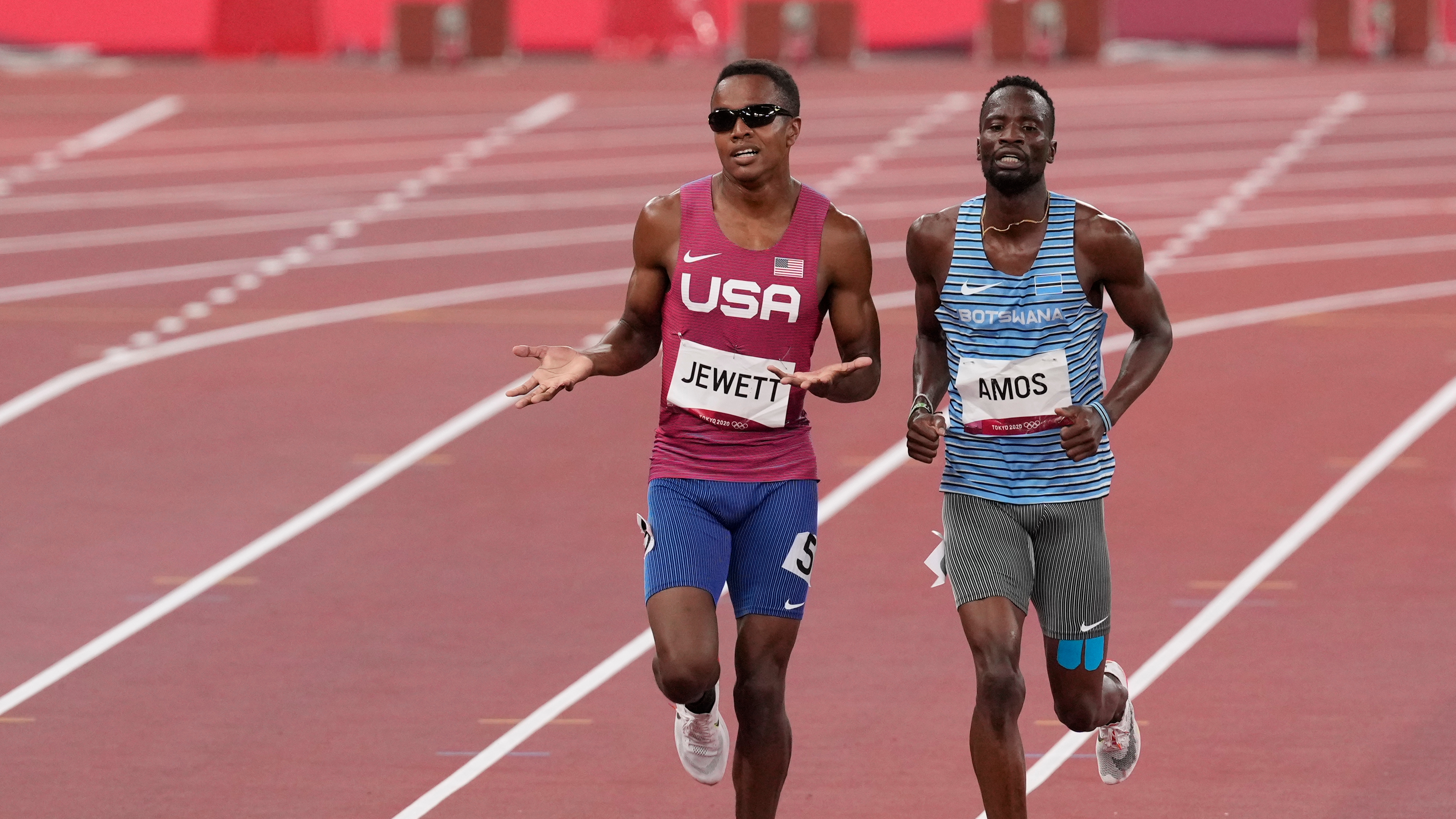 Jewett harbored no hard feelings. But he said that he had one simple rule when he’s racing: Finish. He made sure Amos did, too. By the way, neither runner won any medals.