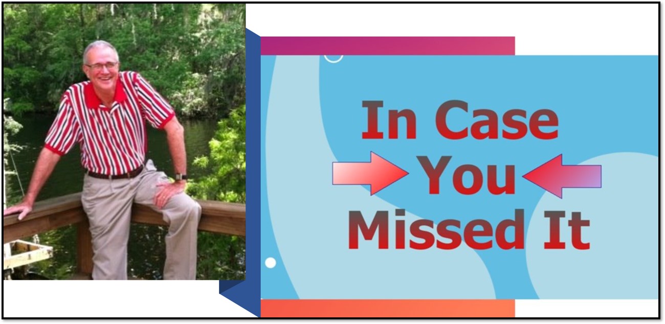 It’s been a wonderful week here in lovely Citrus county. We’re blessed to live here. To bask in the warm sunshine. To enjoy being close to our family. To have an opportunity to minister in the Word. And share these blog posts every day.